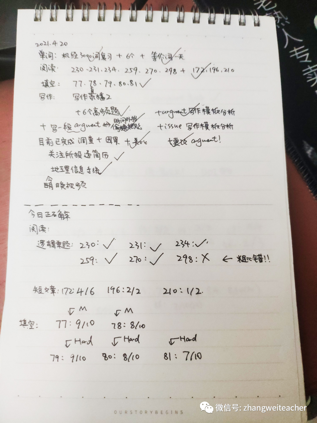 给大家看一眼我的计划本(字不太好看,将就着看看):